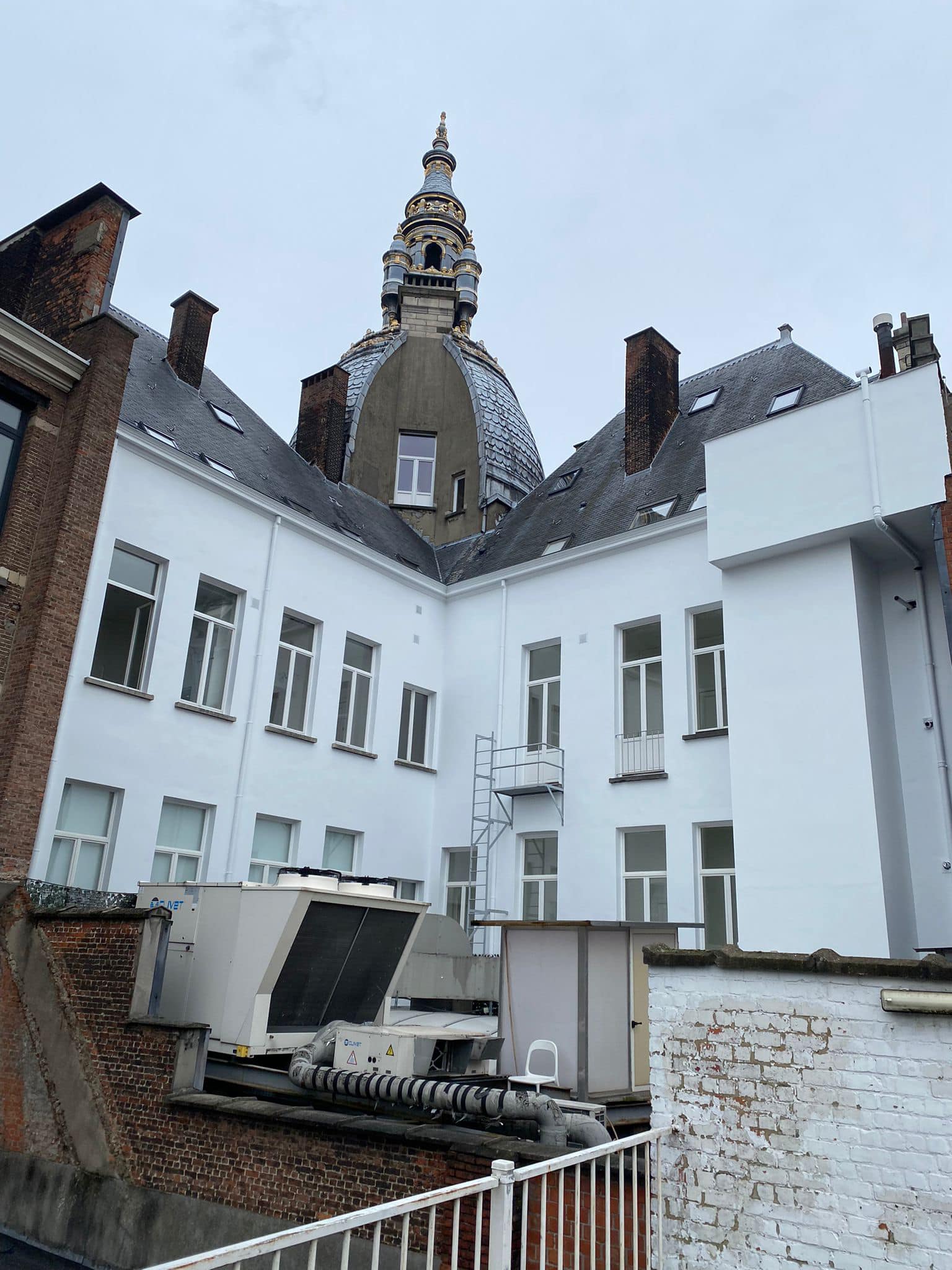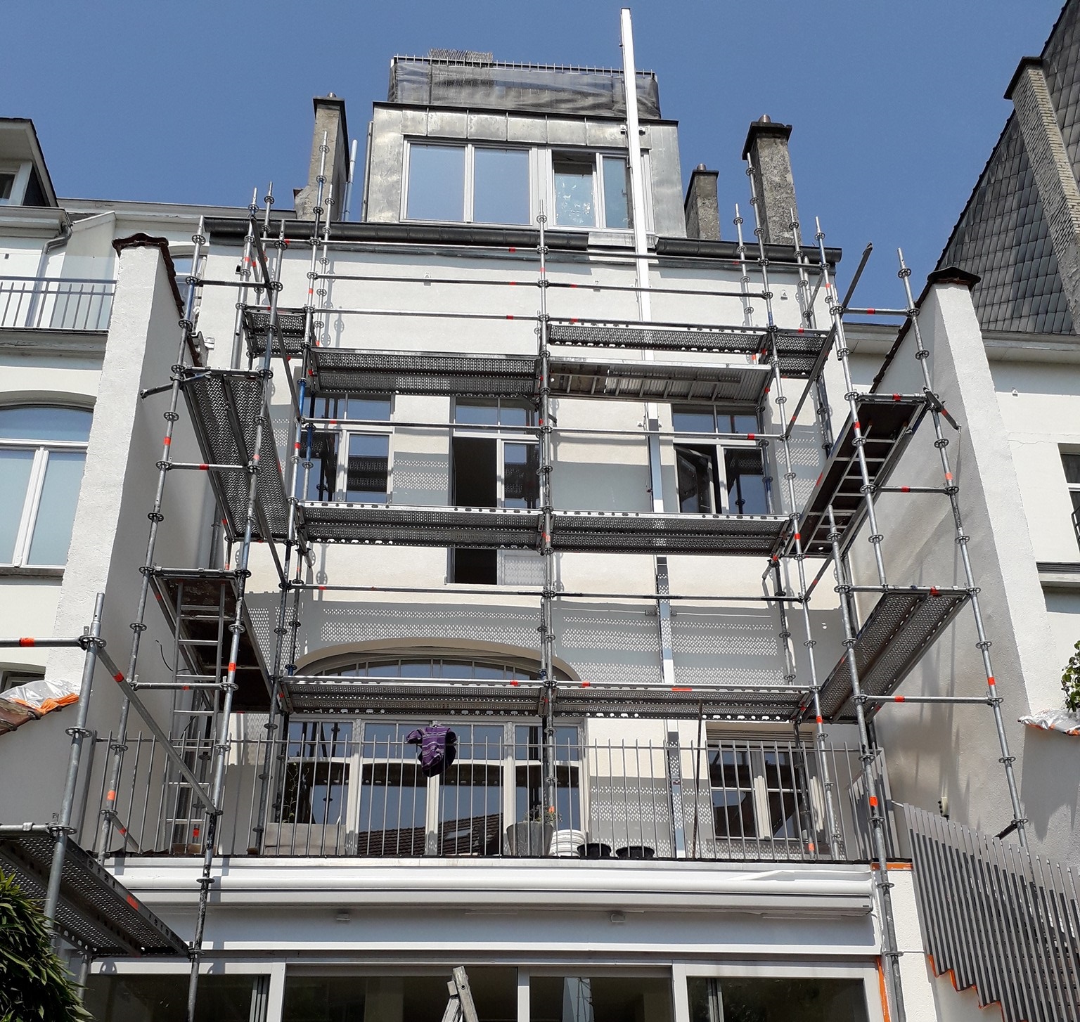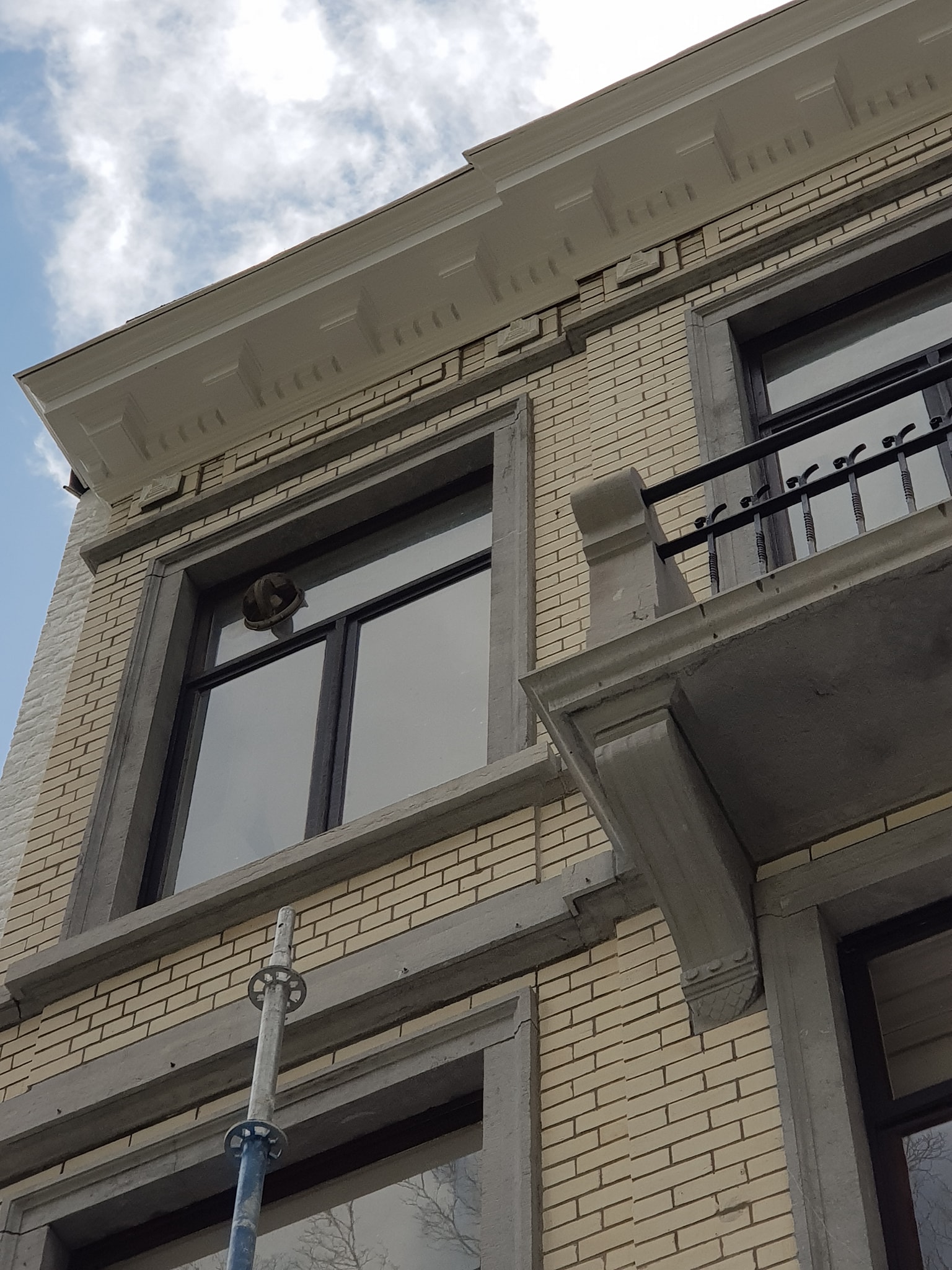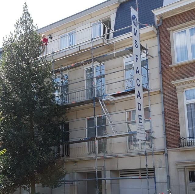 Nettoyage de l’entièreté de la façade par grésage hydropneumatique,