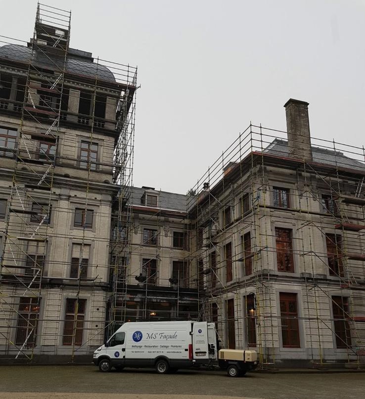 Nettoyage de l’entièreté de la façade par grésage hydropneumatique,