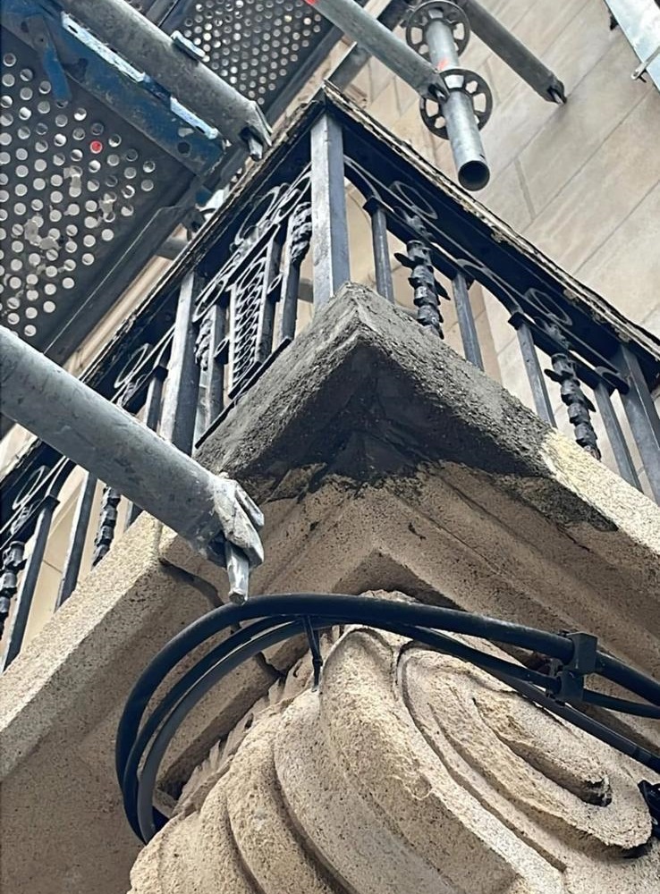 Nettoyage des pierres par procédé TORBO (projection d’eau et de grès blanc finement calibré).